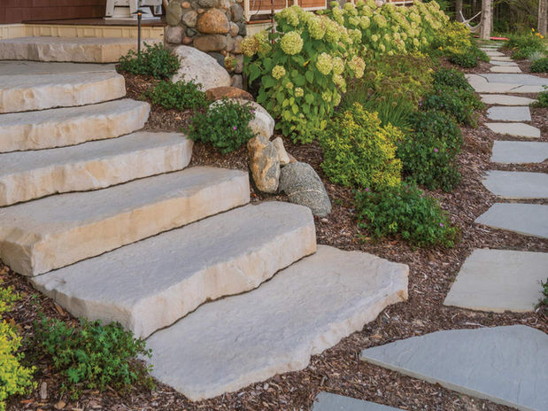 Our HIGH FORMAT® Irregular Steps have stone-like shapes and textures to create inviting walkways or a series of steps.